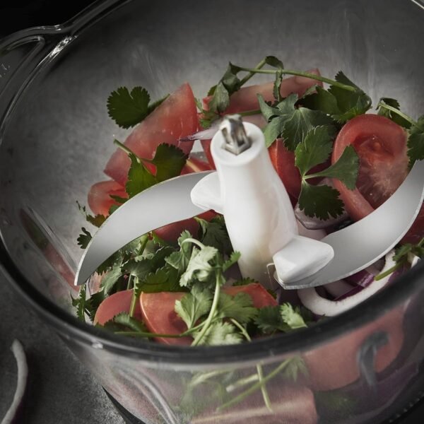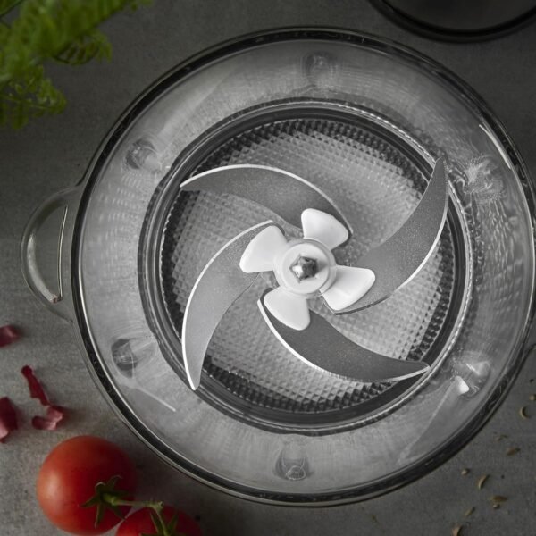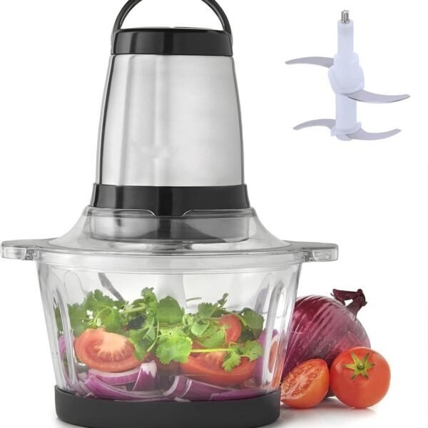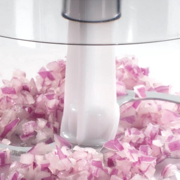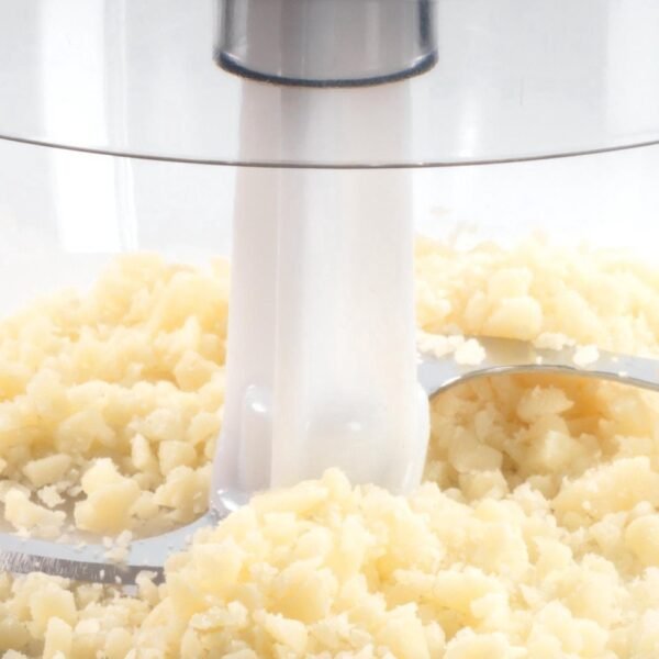 2 sharp stainless steel blades completely chop the food in just a few seconds.