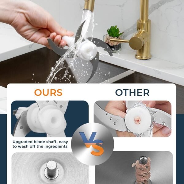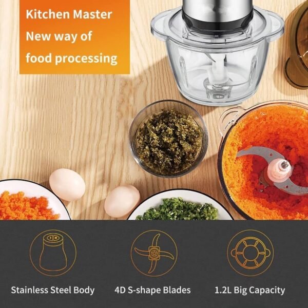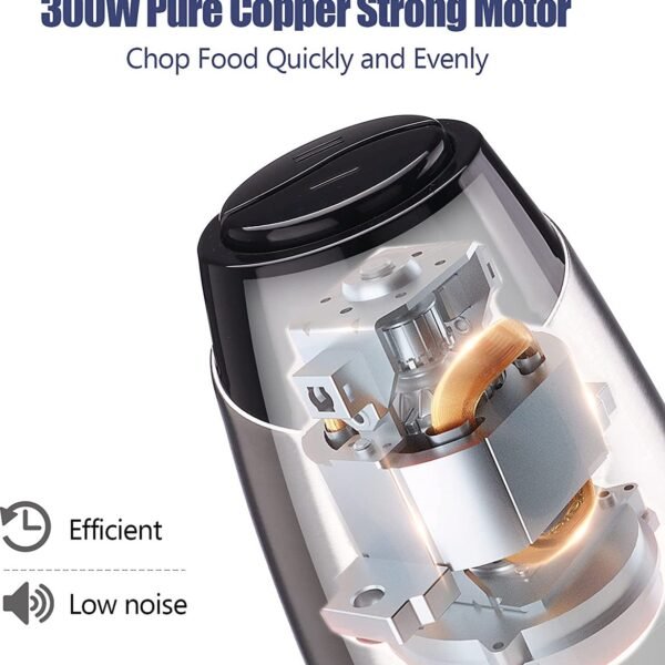 The electric chopper uses 2 S-shaped upper and lower blades that chop meat evenly, chop garlic/herbs quickly. Your cooking becomes much easier than ever with this 1 Liter Food Processor.