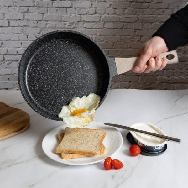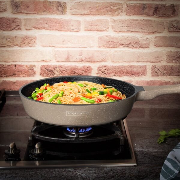 The durable pans are manufactured with Swiss precision and have a high-quality non-stick coating with a marble coating and a durable aluminum housing. Due to the very hard marble coating, you do not have to use butter or oil while cooking, because the food does not stick to the pan. Moreover, this coating is free from the toxic substance PFOA. This makes it very easy to prepare healthy, tasty and lean meals.