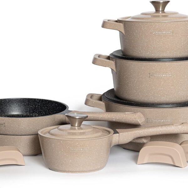 A very extensive set from Royalty Line is a good first step towards good and healthy cooking. The pans have a high-quality marble coating and are suitable for all heat sources, including induction and oven . In short, a pan set that you should not miss in your home!