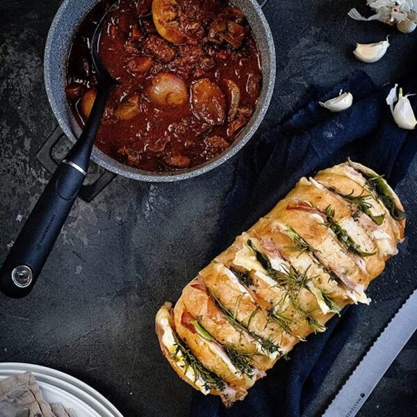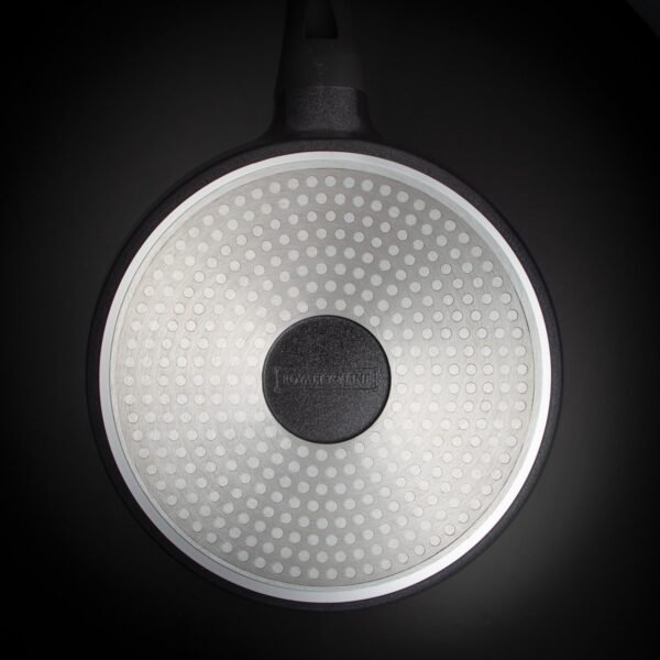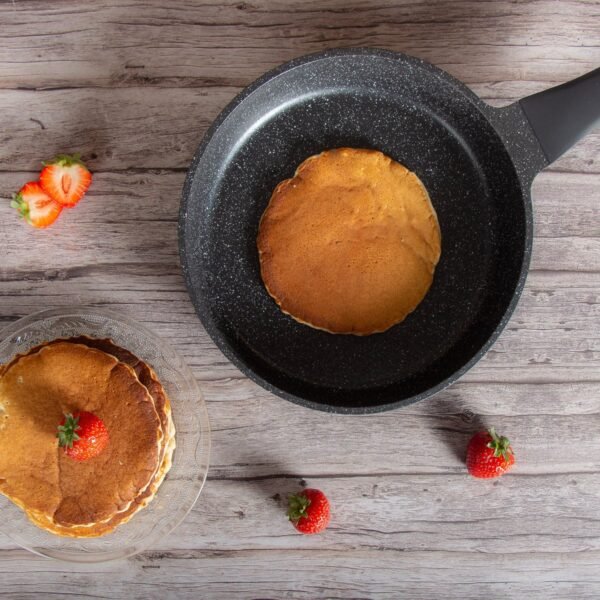 The durable pans are manufactured with Swiss precision and have a high-quality non-stick coating with a marble coating and a durable aluminum housing. Due to the very hard marble coating, you do not have to use butter or oil while cooking, because the food does not stick to the pan. Moreover, this coating is free from the toxic substance PFOA. This makes it very easy to prepare healthy, tasty and lean meals.