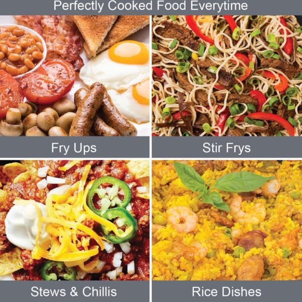 You can prepare different meals in the multifunctional stove. One-pot dishes such as; paella, curries, fajitas, stews, stir-fries etc.