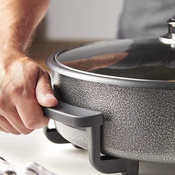 The removable master heat controller ensures the desired cooking temperature so you don’t have to. Make this frying pan work for you!