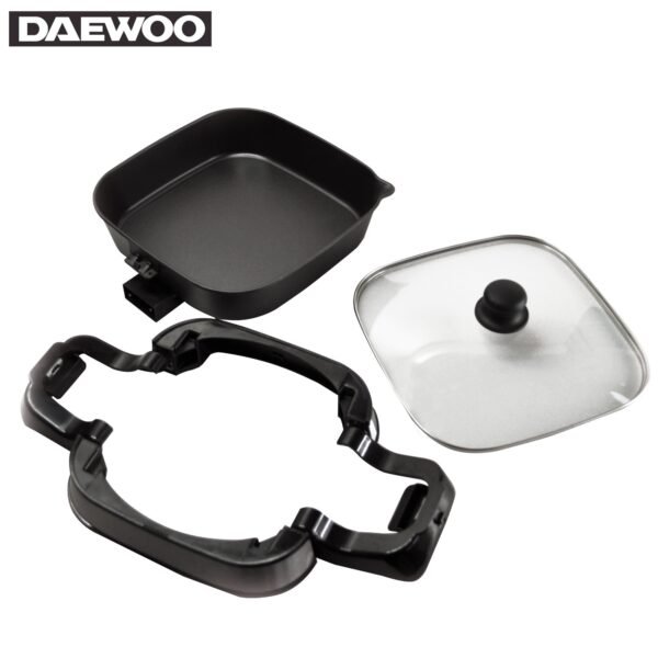 High-sided non-stick wok with lid, perfect for cooking stir fry, paella, risotto, stew and more for big family meals. Portable and easy to move thanks to twin cool-touch handles and detachable electric cord, the pan is perfect for serving fresh meals at the table and using in camper vans and holiday homes.