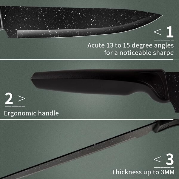 Stylish Design: The elegant black color and modern design make this knife set a stylish addition to any kitchen, elevating your cooking space with functional elegance.