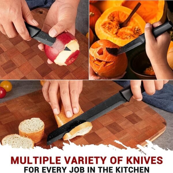 1 x Bread knife (8″- 20 cm): Can be used for cutting bread without breaking or crushing.