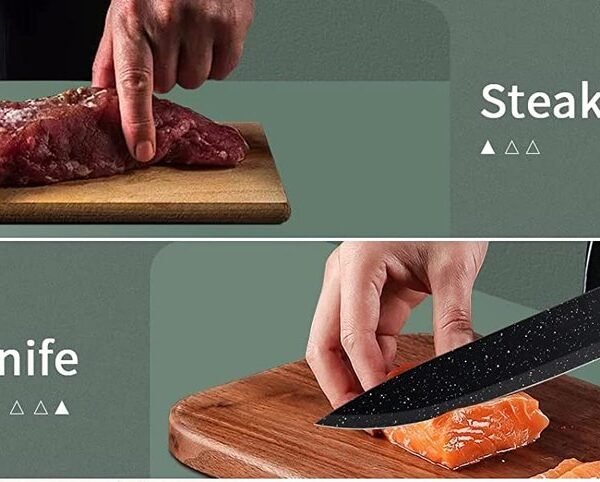 1 x Chef’s knife (7″ – 18 cm): Can be used for slicing, chopping, dicing, mincing, etc.