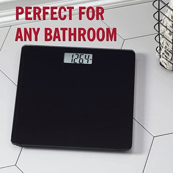 A classic square black platform of 30 cm works well in any bathroom and is a feast for the eyes and the perfect size. Measurements can be read with ease on the 8.2″ x 4″ LCD screen which displays weights in pounds, kilograms or stones. With a capacity of 180 kilos you can get the most out of this scale, while readings are displayed accurately to within 0.1 kilo.