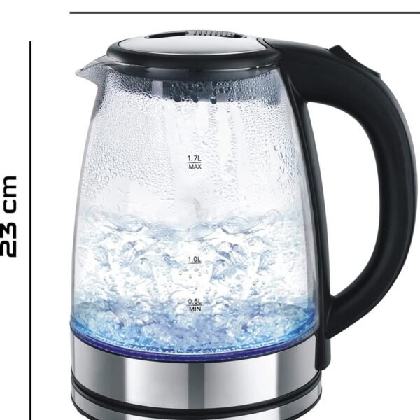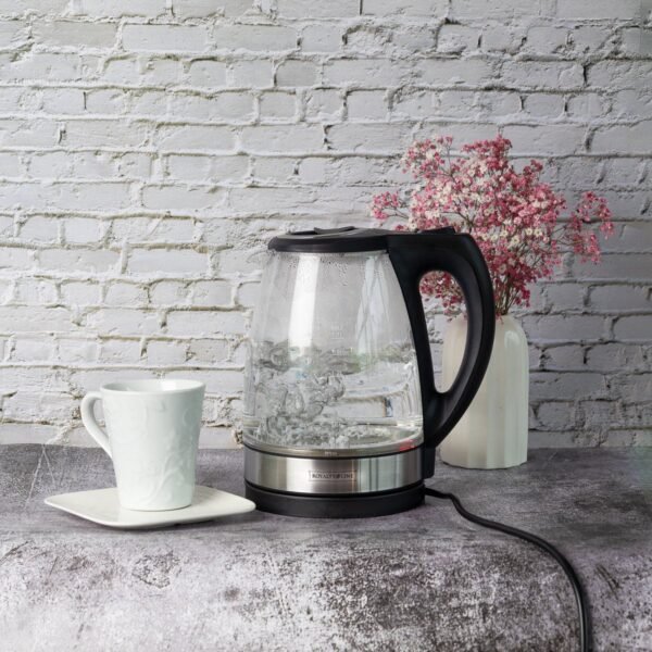 Royalty Line Electric Glass Kettle is made of high quality glass and a stainless steel base, making it impervious to thermal shock and scratches and keeping your glass kettle clean and stylish.