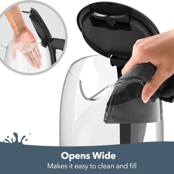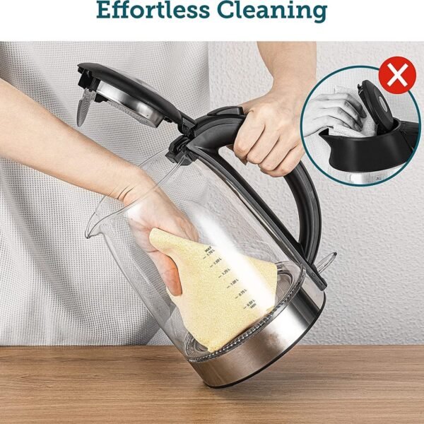 With the advanced built-in thermostat controller, the glass kettle has built-in auto shut-off and boil-dry protection technology. The kettle switches itself off when the water has completely boiled or when there is no more water in it.