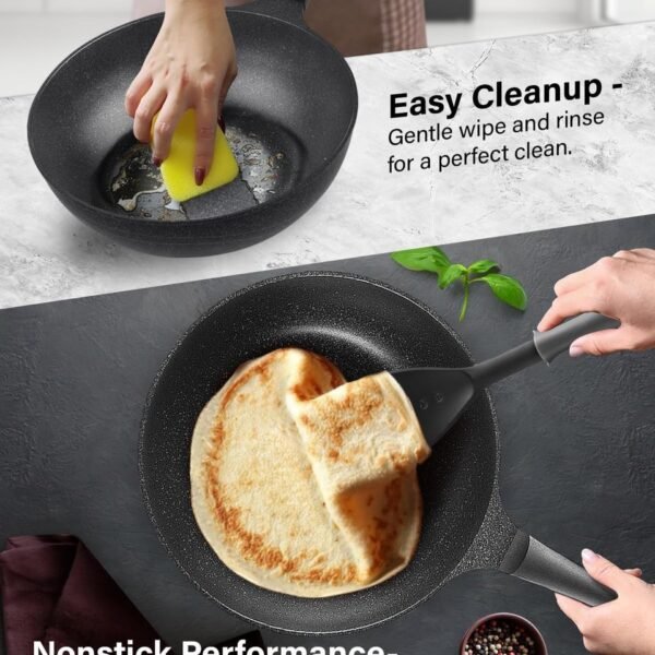 Thanks to the non-stick coating, this frying pan is easy to clean. To wash dishes, you just need to wipe the surface with a cloth. This non-stick pan is dishwasher safe, but hand washing with a mild detergent and warm water is recommended. Using abrasive cleaning agents can damage the non-stick coating.